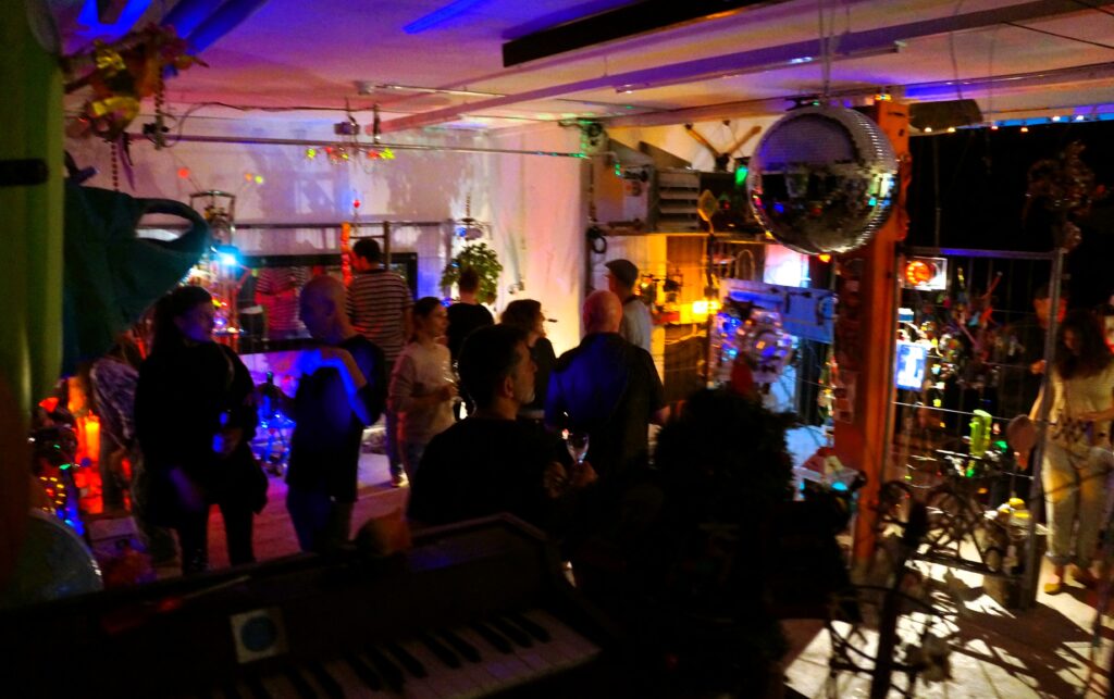 Tanzen und Kunst geniessen mit DJ Gilles in der besonderen Kulisse zwischen leuchtenden und auch bewegenden Installationen.